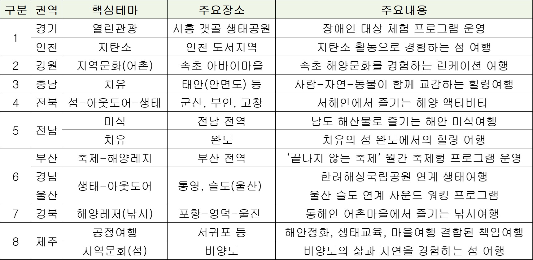 ※ 서귀포 등 : 해안정화, 생태교육, 마을여행이 결합한 책임여행 프로그램